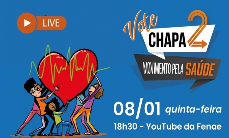 Hoje, dia 8, às 18h30, a Fenae vai promover uma live com todos os candidatos da Chapa 2 - “Movimento pela Saúde” ao Conselho de Usuários do Saúde Caixa