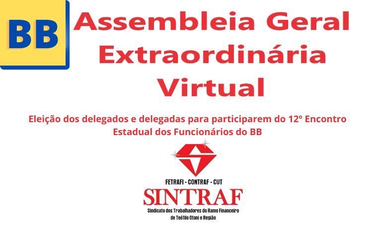 Assembleia será realizada de forma virtual pelo aplicativo Zoom. Pauta será a eleição dos delegados e delegadas para participarem do 12º Encontro Estadual dos Funcionários do BB.