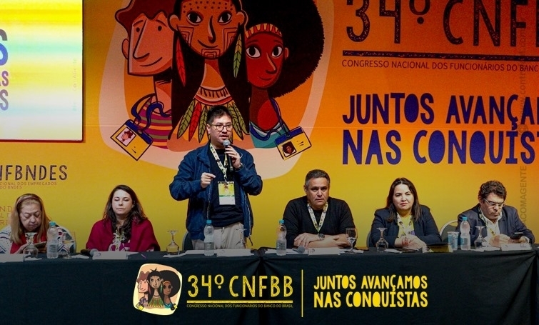 Palestrantes da mesa “Previdência”, do 34º Congresso Nacional dos Funcionários do BB, abordaram os desafios na proteção de recursos geridos para o futuro da classe trabalhadora e também para o desenvolvimento do país