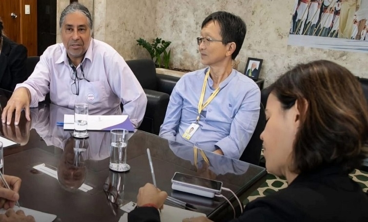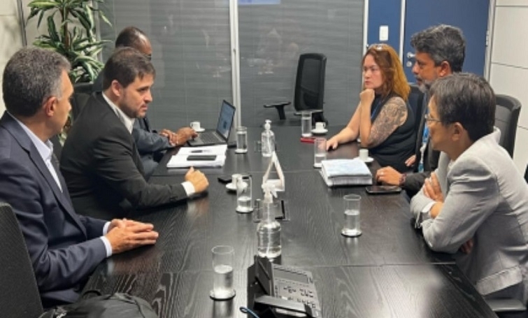 O presidente da Fenae, Sergio Takemoto; e o diretor da Contraf-CUT, Jeferson Meira; estiveram na liderança do governo e no gabinete do senador Jaques Wagner