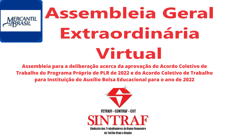 Sindicato convoca bancários do Banco Mercantil do Brasil S/A para assembleia no dia 17 de agosto