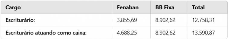 O cálculo da PLR do Banco do Brasil é realizado com base nos módulos Fenaban e BB. Pelo módulo Fenaban, os funcionários recebem 45% do salário paradigma estipulado no acordo, acrescido de uma parcela fixa. Já no módulo BB, há uma distribuição linear de 4% do lucro do banco entre os funcionários, além de uma parcela variável.