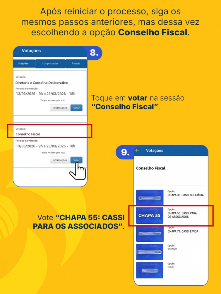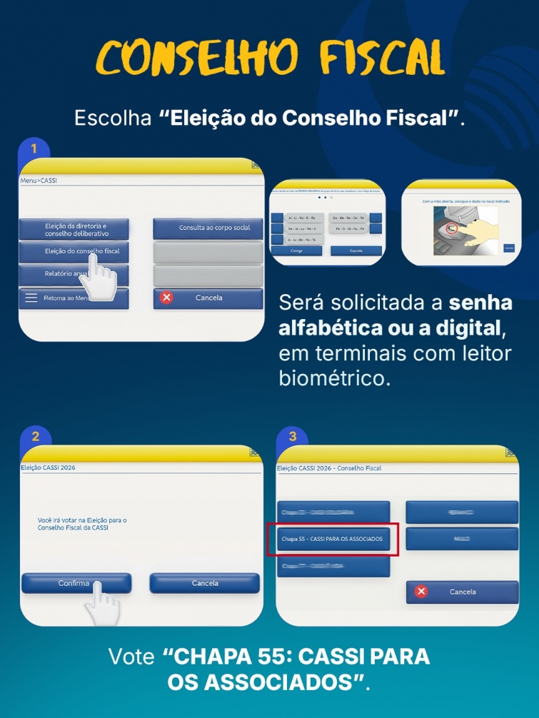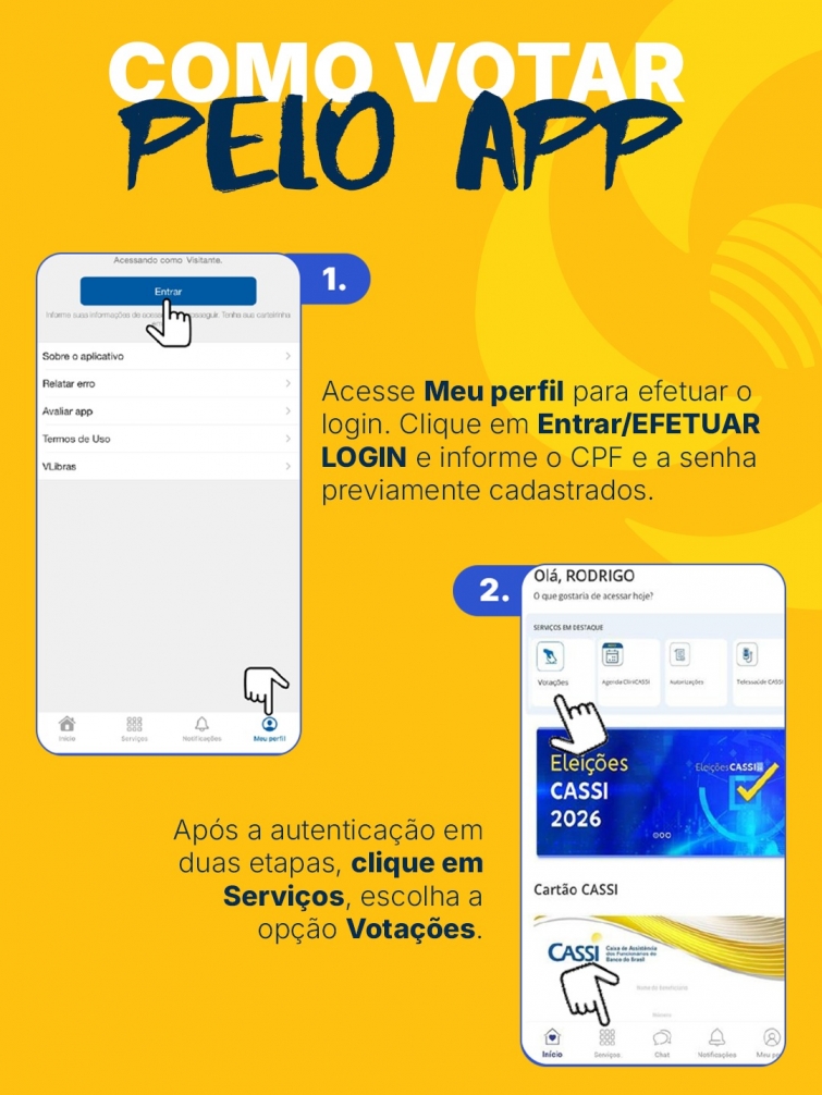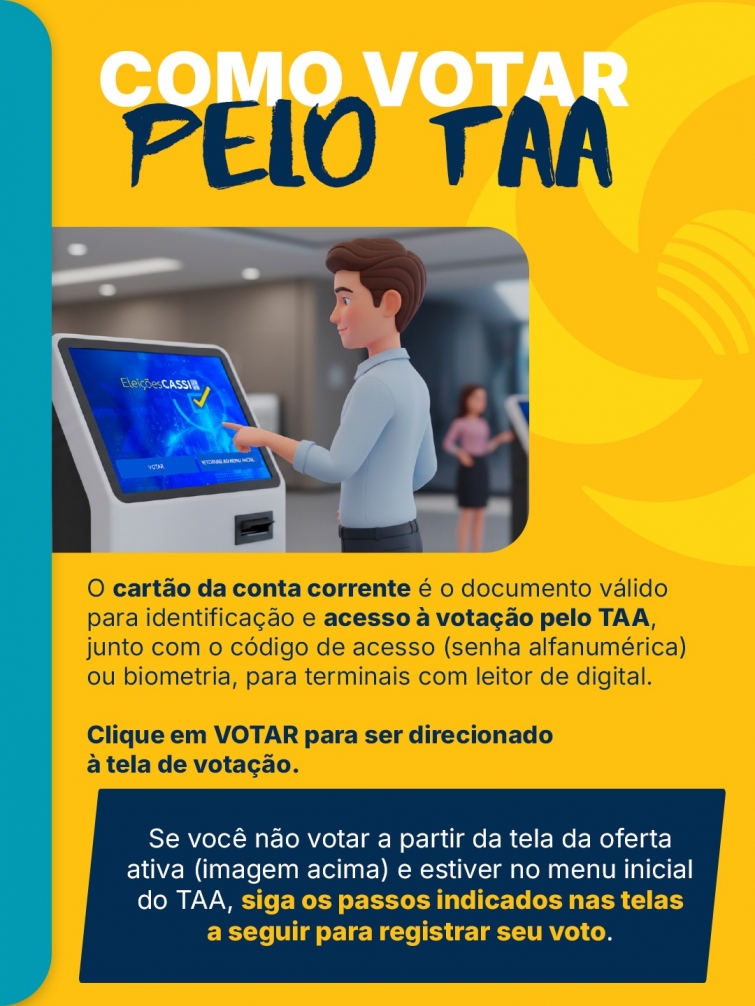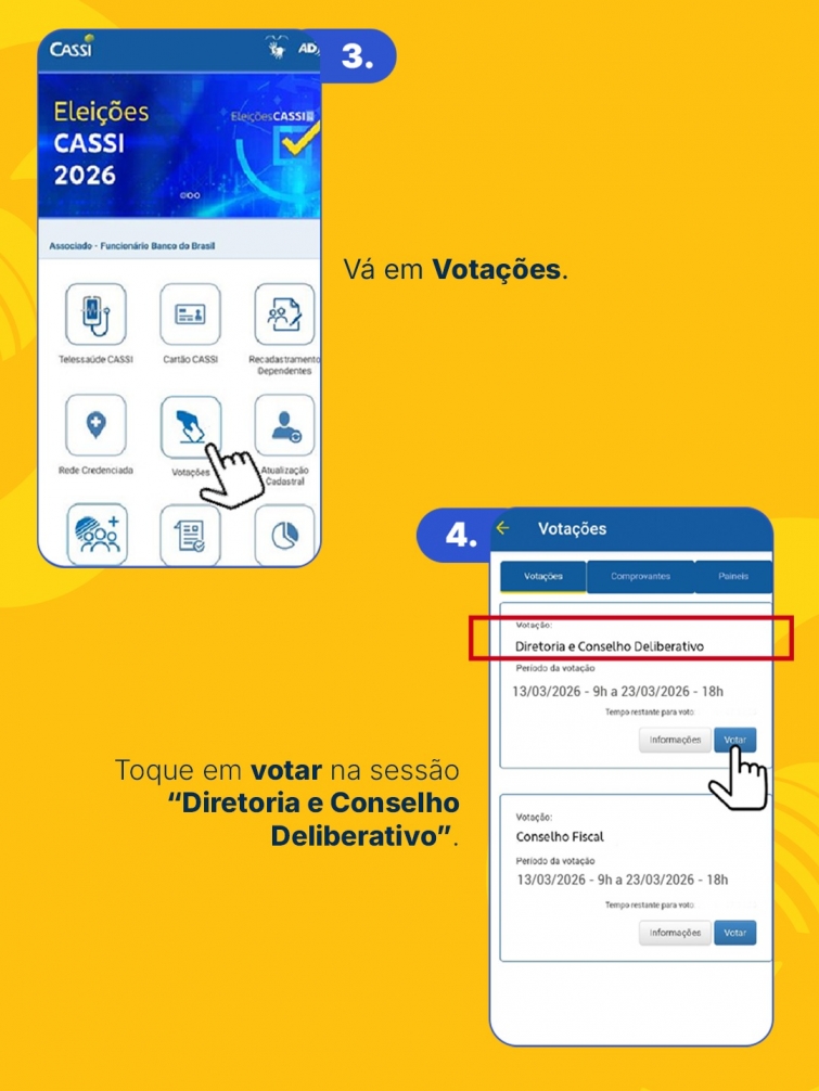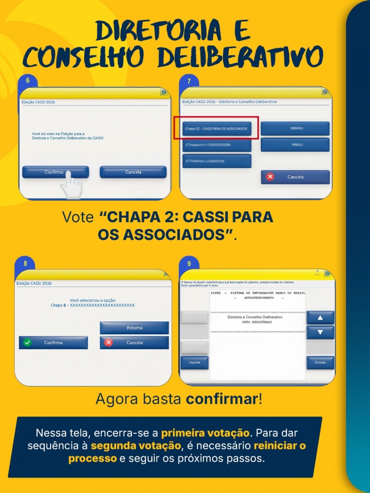 Segundo o regulamento das eleições 2026, a votação e a apuração dos votos serão realizadas exclusivamente por processo eletrônico. Para isso, deverão ser utilizados os sistemas informatizados do Banco do Brasil e da Cassi.