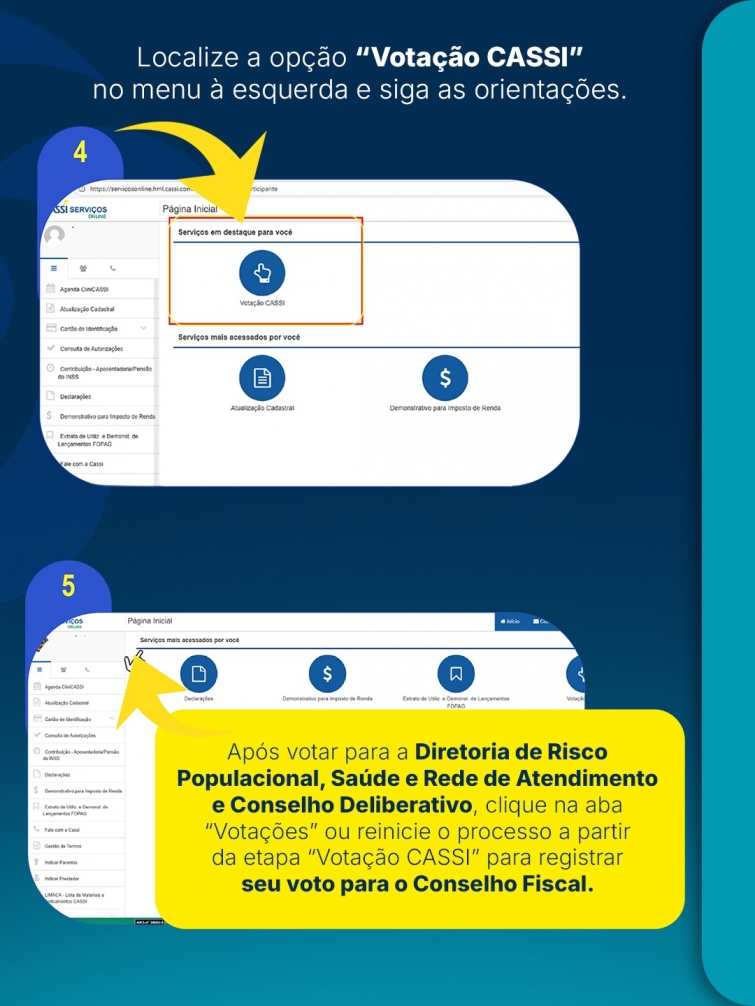 Mais informações sobre o processo eleitoral estão disponíveis no hotsite Eleições 2026, e dúvidas podem ser encaminhadas para o e-mail: comissaoeleitoral2026@cassi.com.br.