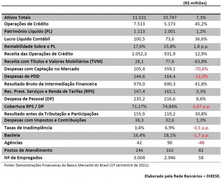 Veja abaixo a tabela resumo do balanço do Mercantil do Brasil elaborada pelo Departamento Intersindical de Estatística e Estudos Socioeconômicos (Dieese).
