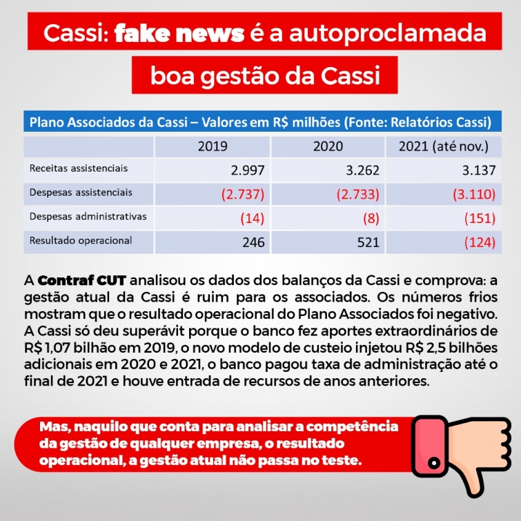 Mesmo com aporte bilionário, despesas da Cassi são maiores do que receitas